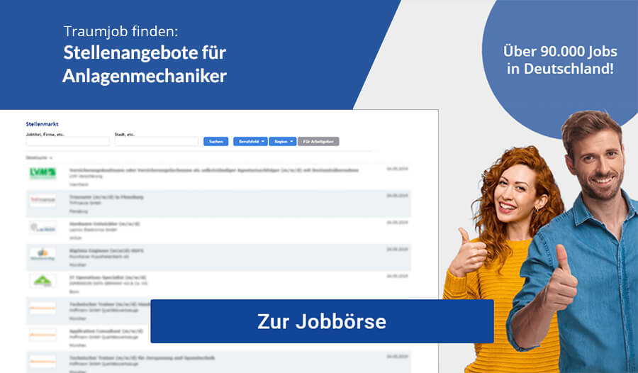 Aber bereits mit der Grundausbildung zum Anlagenmechaniker hast du dich für einen Job entschieden, bei dem du gutes Geld verdienst. Zudem hast du als Anlagenmechaniker gute Zukunftsaussichten. Denn in vielen Betrieben fehlen geeignete Fachkräfte, sodass du oftmals sogar auswählen kannst, in welchem Betrieb du einen Ausbildungsplatz bzw. eine Anstellung annehmen möchtest. Falls du gute Leistungen erbringst, geht dein Ausbildungsvertrag oftmals nahtlos in eine unbefristete Übernahme über.